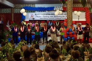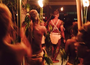 We arrived at 4pm to the grand hall of the Malaita Hotel, all decked out in decorations.  There were hundreds of school children, all in traditional costume, waiting patiently in the scorching sun. The guests, all lined up in a back room, awaiting their grand entrance. There we sat till 5:30! This is not an unusual occurrence in the Solomon Islands. The chairman eventually pulled up in his SUV, spat a long stream of blood red betel nut and unloaded his crates of beer before starting the ceremony. What followed was a spectacular event. There were enthusiastic speeches (give a man a microphone), singing, dancing, then more speeches, dancing with fire, oh and more speeches. Thankfully, by 8:30, the microphone was taken from the chairman and we were allowed to eat. The  centre piece a full roast pig. Then they gave the microphone back. What followed was more speeches, more fire, more songs and a lot more dancing. The male delegates noticibly growing more “enthusiastic” as the night wore on ( it is taboo for women to drink). The best part being the point at which the chairman made a speech thanking himself for all his hard work because nobody else has. A fact I think that most would deny. So, by 10pm, we snuck out the back, unable to watch anymore.