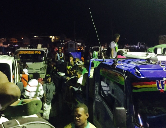 We climbed onto the back of the truck at 1am. It was already piled high, bodies packed into every space, legs and arm dangling from all sides. Even the roof of the cab was taken by two young boys. The 10 of us managed to cramp into a space the size of single mattress, which was twice as much as any other passenger. It was 2:45 am before the boat had finished unloading and the convoy of trucks started to move out into the black night. We were heading to a remote village in North Malaita about 5 hours drive away.