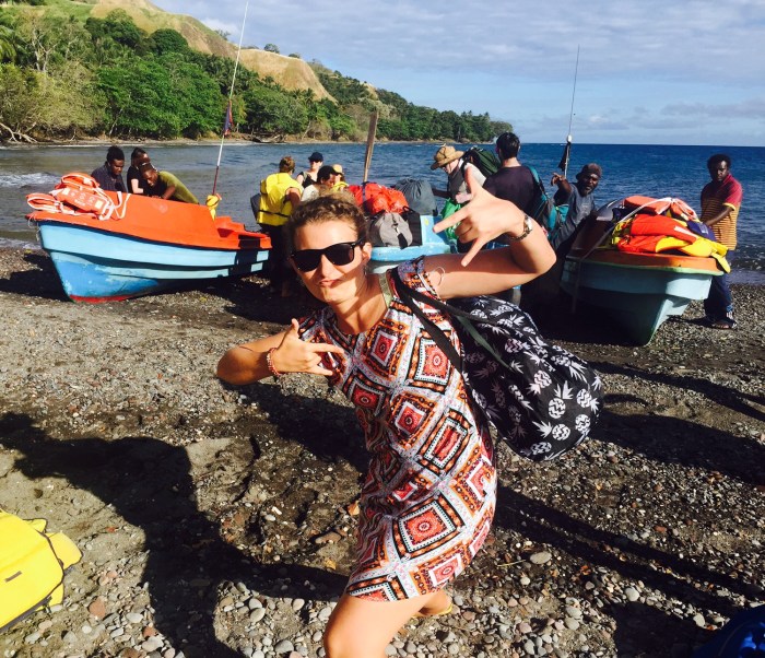 We were headed up to Lau Lagoon in north Malaita. It was one hell of a journey to get there but an amazing ride. We cling to the back of the truck as we bump and bang along an unmade road, puckered by pot holes and broken bridges, splashing through rivers and negotiating roadblocks along the way. It is a magical ride as all along the palm lined road small villages appear through the trees, men, women and children stop and look up, laughing and waving as we pass by. There are constant shouts of “arakwa” (White man), naked babies playing, children running, football games, volley ball, women dancing, men chatting, a market, a school, pigs and chickens, fires burning, a busy river, people washing, a waterfall, a white powder beach, the ocean and a choir of voices singing as we pass an overcrowded truck. For four hours, as the world rushes by, there is not a single moment that doesn’t hold something new and exciting to discover.