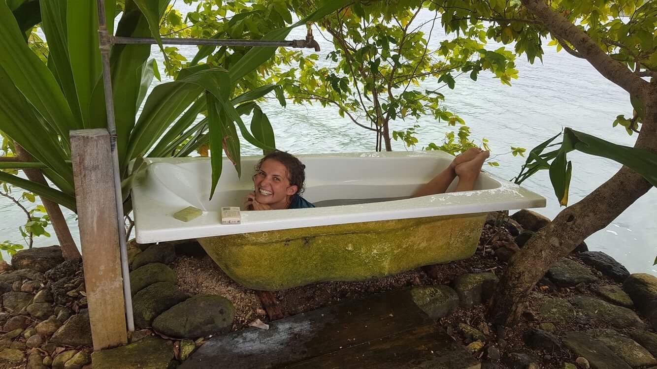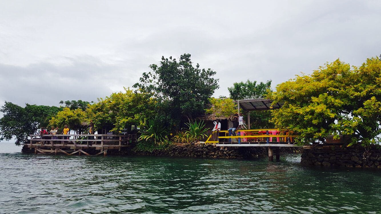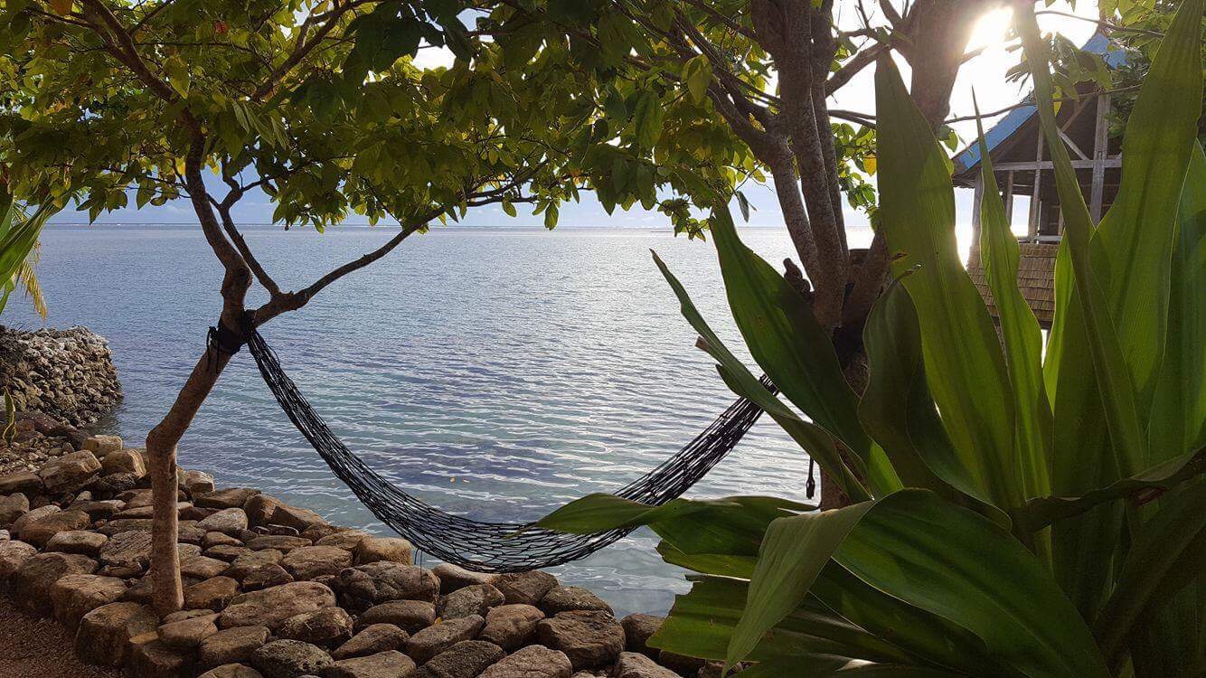 At night we sleep in leaf huts, lulled to sleep by the gentle lapping of the lagoon waters against the shores of our tiny island.
