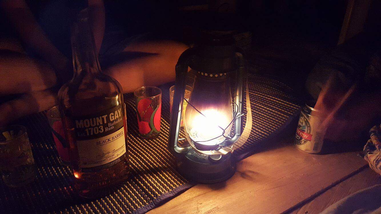 The days are simple. We dine on huge fish and seafood cooked on an open fire, tearing it apart with our hands, the vegetables fresh and the fruit so sweet. It is wet season and it rains and it rains. We shelter, drinking hot toddies and putting the world to rights. Or we sit by the light of a kerosine lantern playing board games into the night.