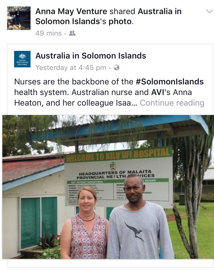 The trip to south Malaita with the Maternity team. Malaita is one the most beautiful places I have ever lived and to see it with you guys made it extra special so thanks, for an amazing adventure. I will not mention the horrendous journey home but I do recall lying on my back, on a jetty, singing songs to the sky as the sunset. Happy memories.