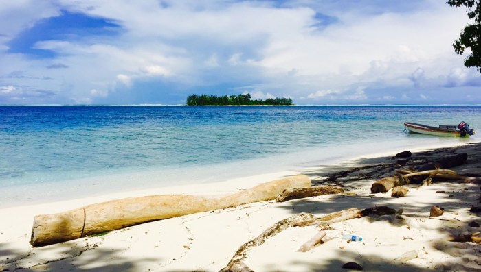 So, it is 11 am on Easter Sunday and Obed is skill-fully navigating the boat through the shallow, tropical reefs as we make our way along the shores of Mbabanga Island. This is probably one of the most visited islands in Western Province as it has two of the country’s most famous resorts, Fatboys at one end and Sandbis at the other.